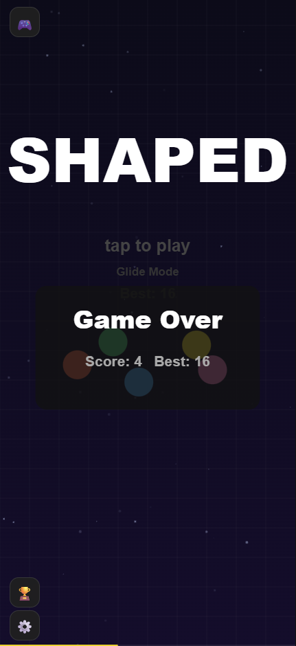 Shaped is a game i had in mind for a very long time and it was also inspired by a very famous old game. Just don't jump into the wrong color and hit the pilars. Enjoyyy